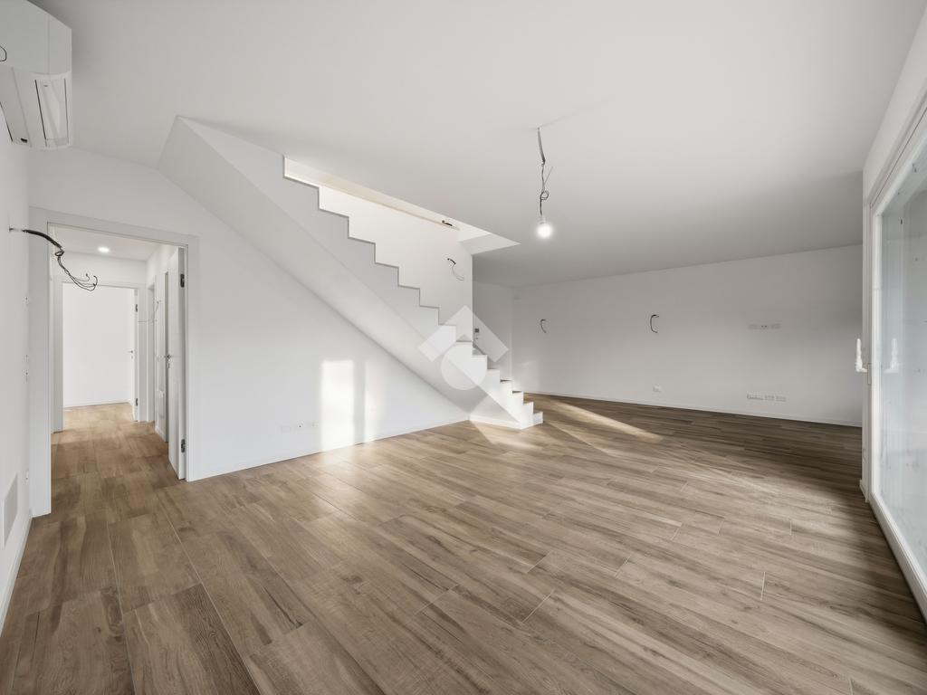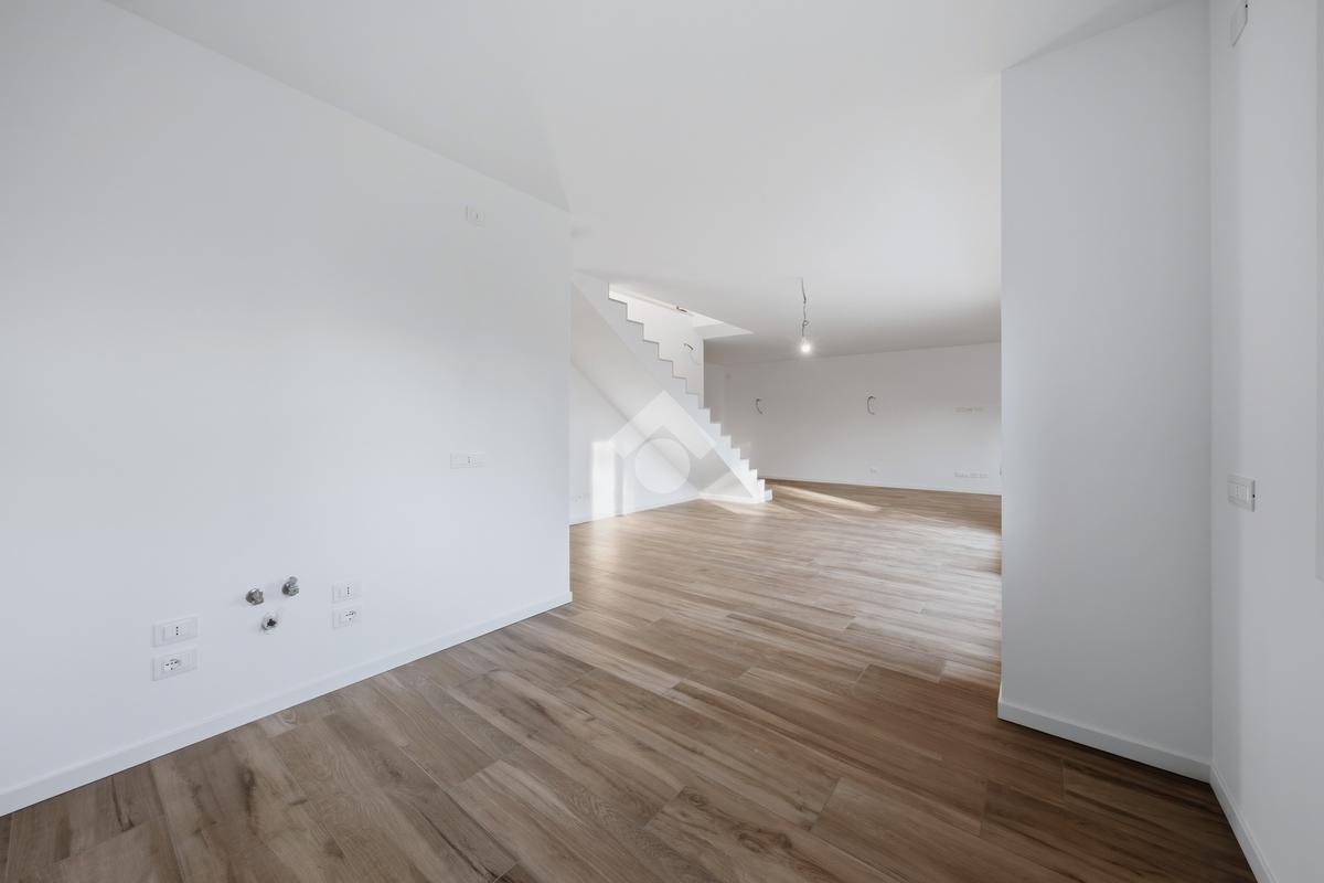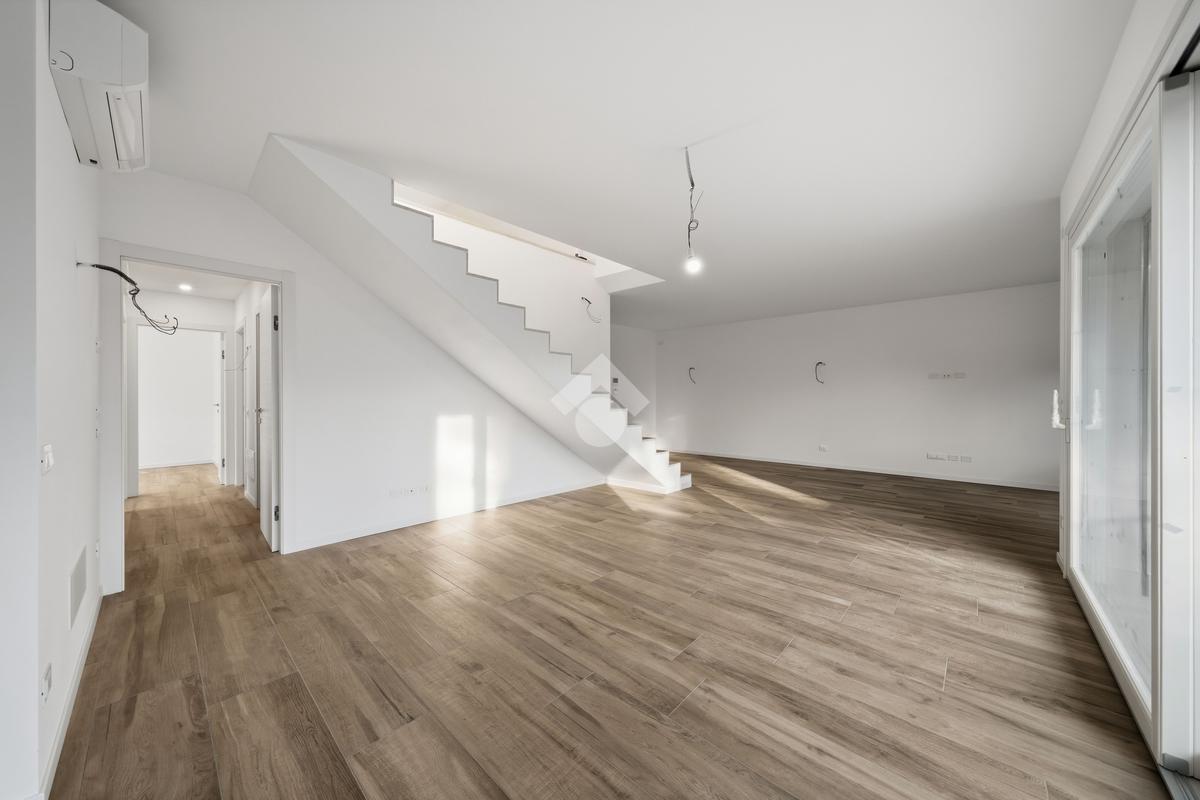 Internamente l'appartamento sarà composto da un ampio soggiorno con cucina a vista e accesso al terrazzo, due bagni, un ripostiglio, una camera matrimoniale con accesso ad un balcone e due camere singole di cui una con accesso al balcone. Salendo le scale troviamo la mansarda con ampia terrazza di 48 mq.