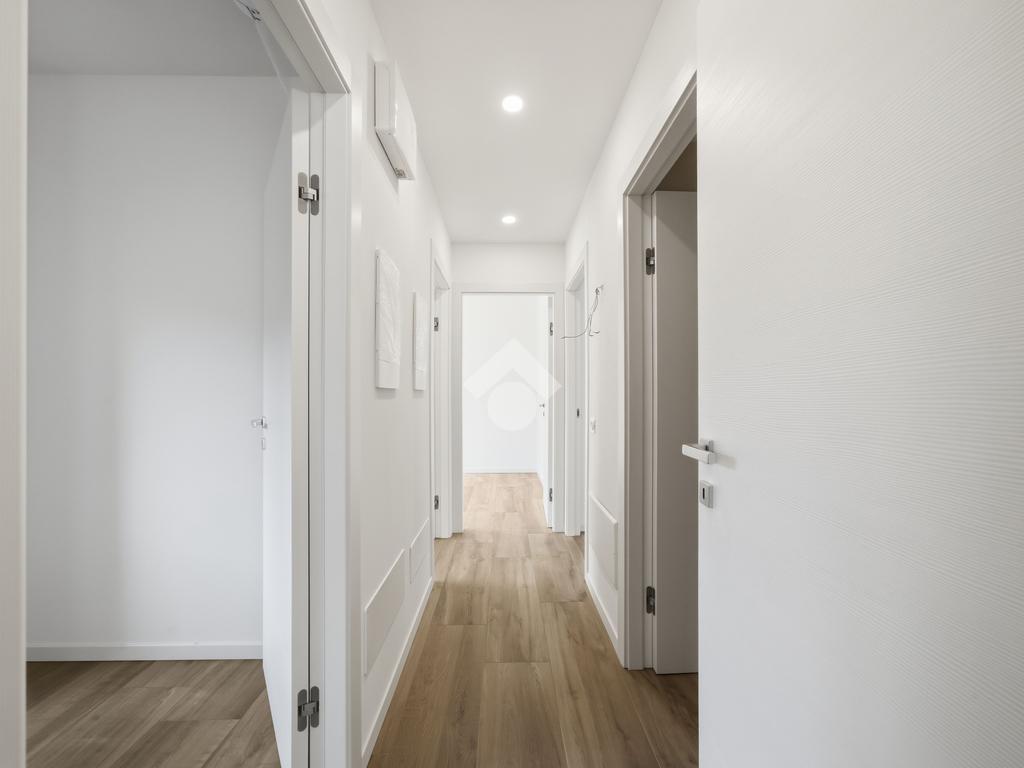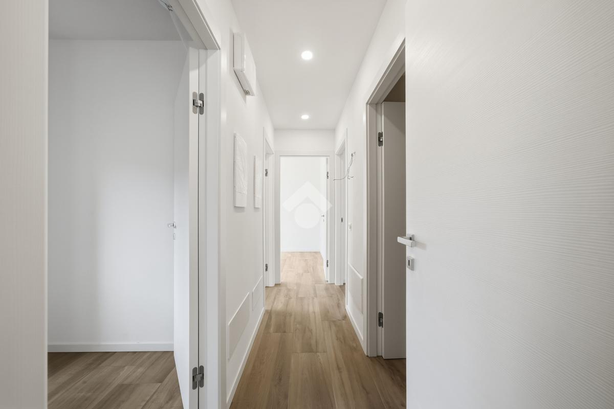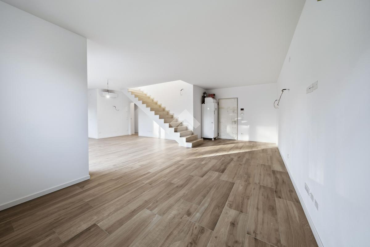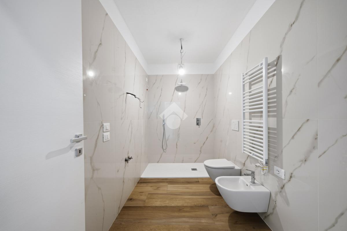 Internamente l'appartamento sarà composto da un ampio soggiorno con cucina a vista e accesso al terrazzo, due bagni, un ripostiglio, una camera matrimoniale con accesso ad un balcone e due camere singole di cui una con accesso al balcone. Salendo le scale troviamo la mansarda con ampia terrazza di 48 mq.